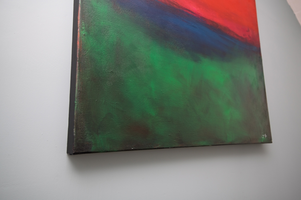 This piece began as a horizon image that appear to have more realism in the painting. However, I loved the colours so much that i painted over areas with detail with a haziness. I still see the horizon that i have painted, but faded into the backgound