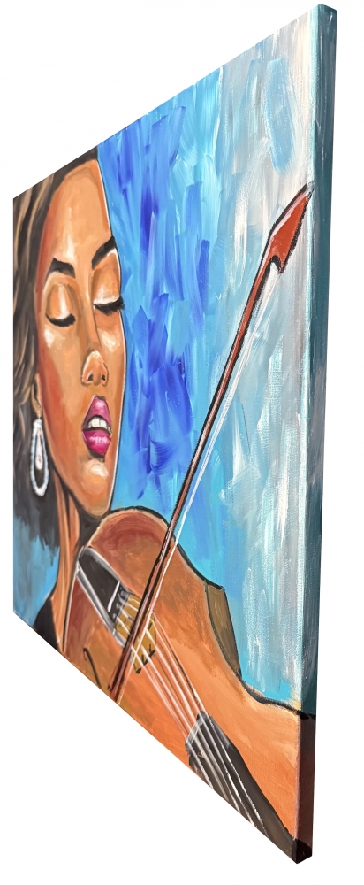 A vibrant and modern portrait painting that catches the eye. The painting continues over the sides so it may be hung without a frame. The canvas has been wired at the back for hanging straight onto the wall. The painting will be carefully packed into a custom made box and delivered within 2 working days by a tracked courier service. Also comes with a certificate of authenticity.