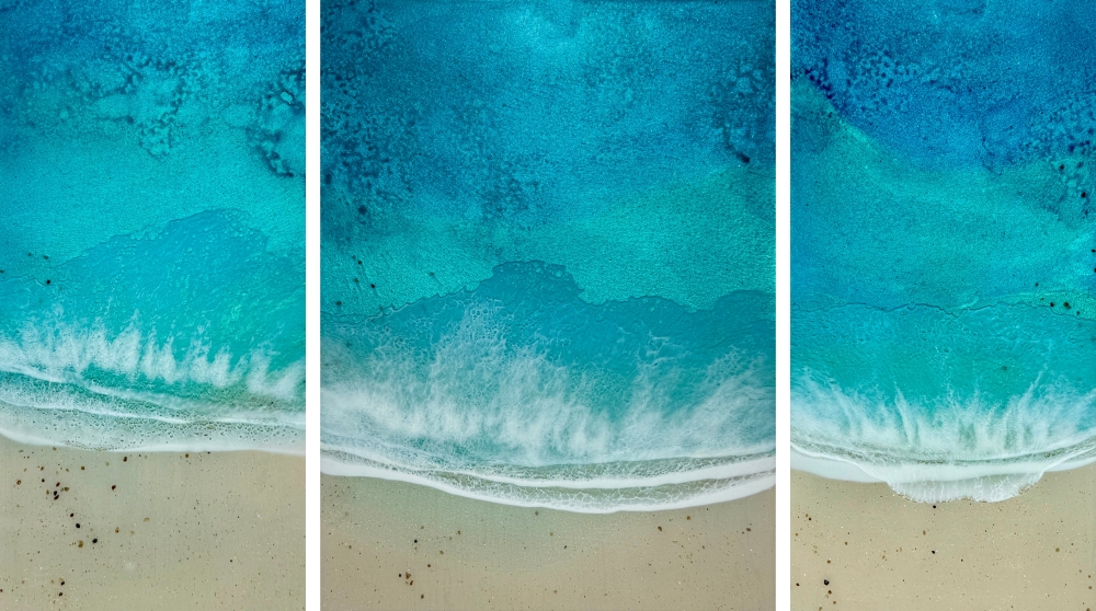 Original, one-of-a-kind, hand-painted artwork inspired by the aerial views of The Bahamas.