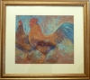 The painting measures 15.5 x 13 inches. There is a cream mount and glass to protect the pastel, the outside of the gold frame measures 24 x 21.5 inches. It is ready to hang with the fixings on the back.