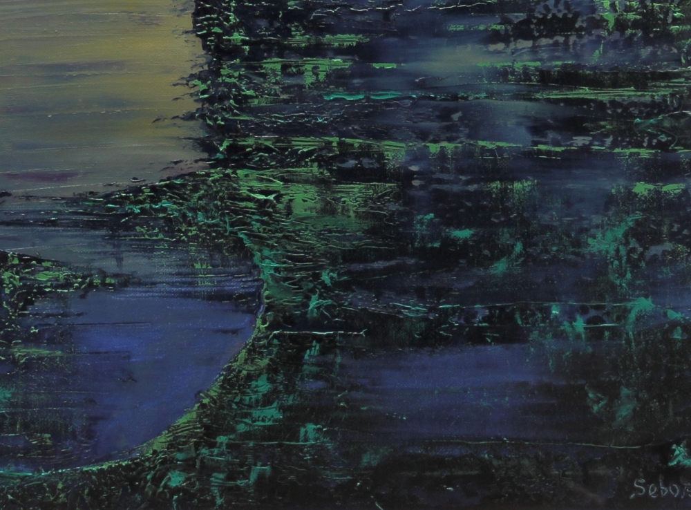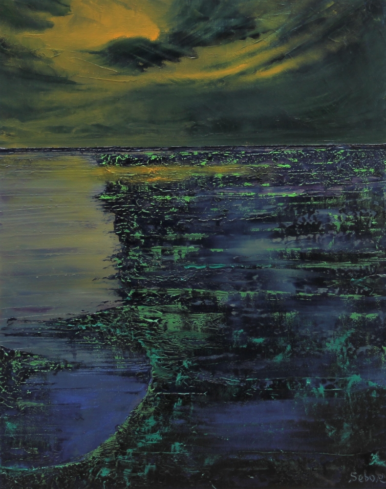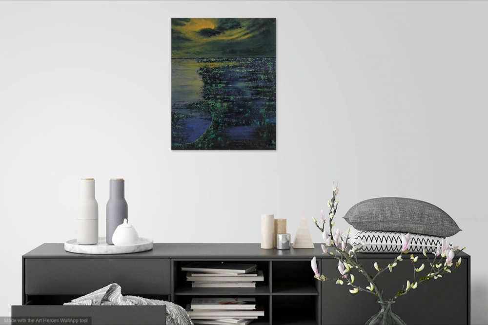 In this oil painting, I've woven surreal and semi-abstract elements to explore the depth of our inner and outer worlds. The intense, brooding skies and the intricate, shimmering waters speak to the duality of what's evident and what's beyond perception. I crafted a visual riddle wrapped in enigmatic beauty, meant to ignite the imagination and invite introspection. Hanging it in your space brings a mesmerizing, contemplative energy that's both profound and invigorating.