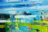 Highly pigmented, heavy body acrylic Abstract landscape paintings. Artist using a thick consistency of Artist viscosity metallic and pearlescent colours unique to Acrylic and not available in oil paints. Colourful, bright and shimmer as you travel along its line of expressive progression.