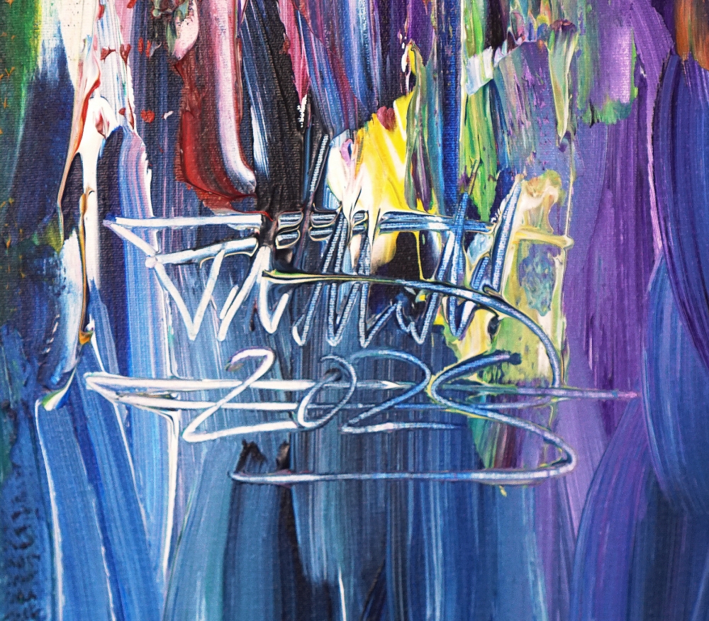 It was painted with professional acrylic paint on canvas. Stretched on a wooden frame. The sides are painted, so the painting is ready to hang. You get a certification of authenticity.