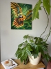 The green backdrop represents the heart chakra—love, growth, and harmony. The parrot’s fiery reds, golden oranges, and electric blues evoke joy, courage, and self-expression. This fusion of energy and spirit creates a dynamic centrepiece for any art lover's home or collection.