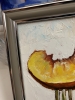 A juicy peach slice, seemingly plucked from the summer sun, rests on a silver fork against a pristine white background. The painting captures the essence of a ripe peach, with its vibrant hues and delicate texture, inviting the viewer to savor its sweetness. The use of light and shadow highlights the peach's natural beauty, creating a still life that is both realistic and evocative.